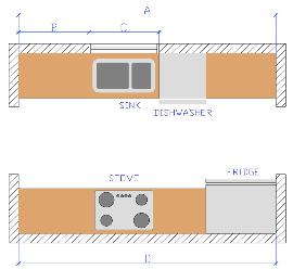 This design features all work areas along a single wall.
