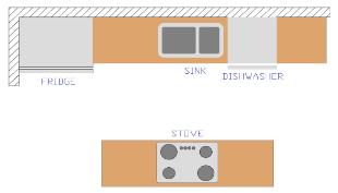 This is not considered an efficient kitchen design.